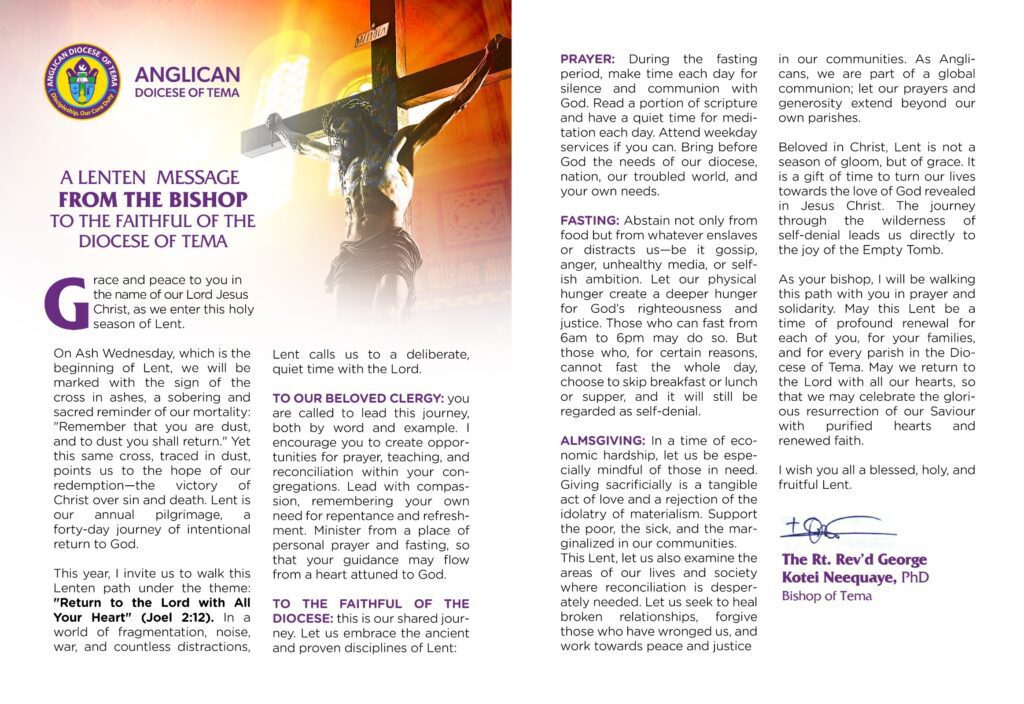 The Bishop of the Anglican Diocese of Tema, the Rt. Rev’d Dr. George Kotei Neequaye, has urged clergy and laity to embrace the 2026 Lenten season as a time of sincere repentance, renewal, and deeper commitment to God.